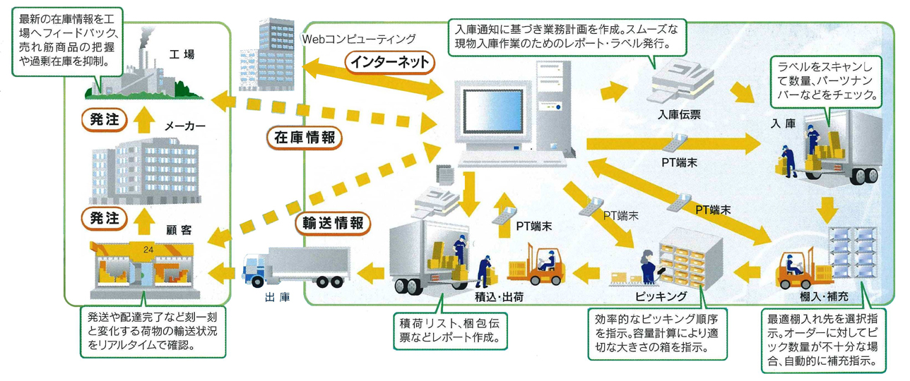 多様化する流通ニーズにお応えする為、輸送・保管・在庫管理・加工・仕分・情報などの一環した流通業務を提供しております。